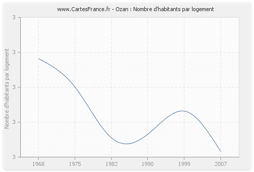 - Nombre d'habitants moyen par logement d'Ozan en 1968 : 2,85