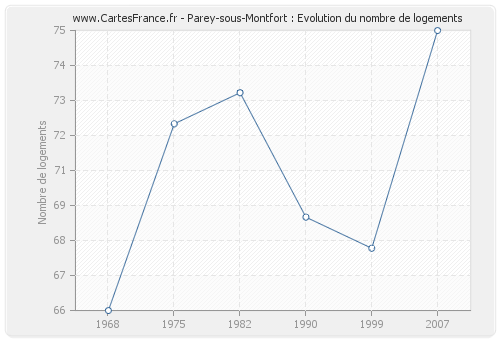 - Logements de Parey-sous-Montfort en 1975 : 72