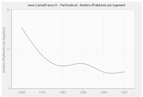 - Nombre d'habitants moyen par logement de Parfondeval en 2007 : 1,64