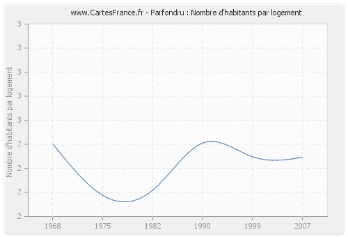 - Nombre d'habitants moyen par logement de Parfondru en 2007 : 2,38