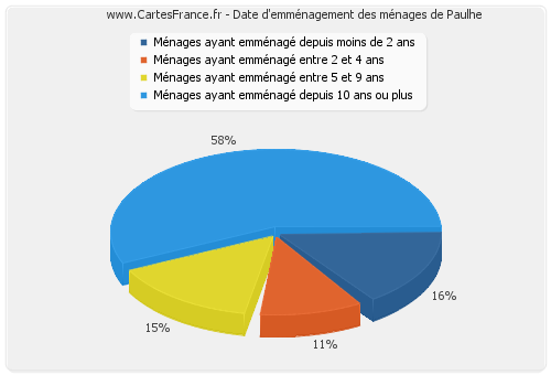 - Nombre de ménages de Paulhe ayant emménagé depuis moins de 2 ans : 24