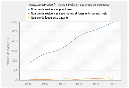 Historique du nombre de logements de Pavie de 1968 à 2007 :