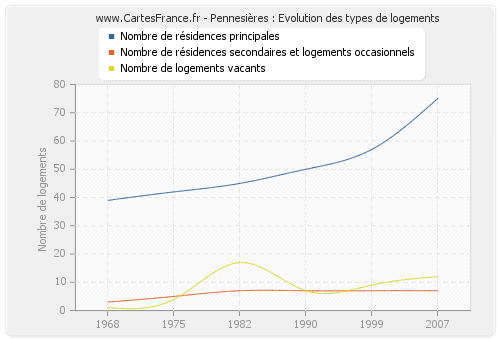 Historique du nombre de logements de Pennesières de 1968 à 2007 :