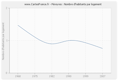 - Nombre d'habitants moyen par logement de Péreyres en 2007 : 0,76