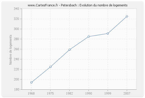 Historique du nombre de logements de Petersbach de 1968 à 2007 :