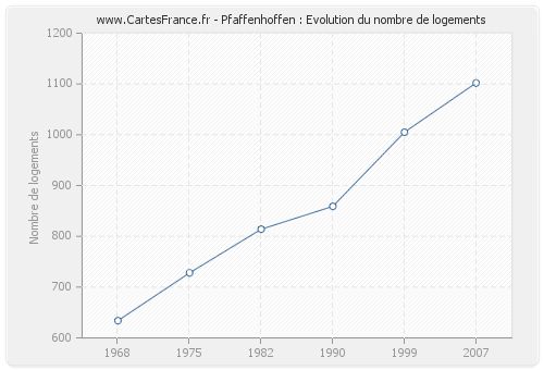 Historique du nombre de logements de Pfaffenhoffen de 1968 à 2007 :