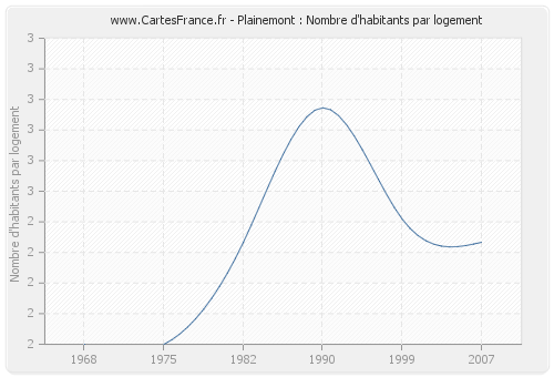 - Nombre d'habitants moyen par logement de Plainemont en 1975 : 2,00