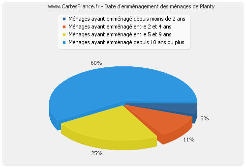 - Nombre de ménages de Planty ayant emménagé depuis 10 ans ou plus : 51