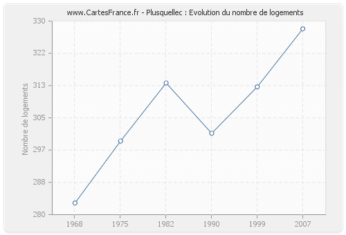 Historique du nombre de logements de Plusquellec de 1968 à 2007 :