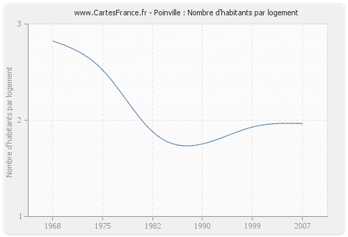 - Nombre d'habitants moyen par logement de Poinville en 2007 : 1,97