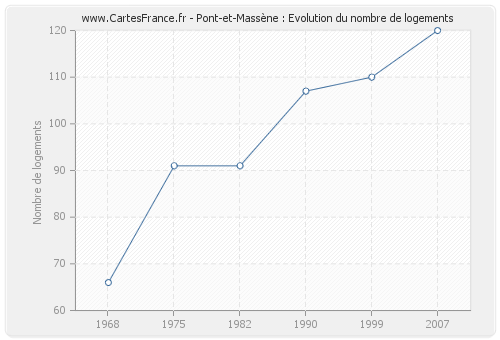 Les logements de Pont-et-Massène étaient composées en 2007 de 118 maisons et 2 appartements.