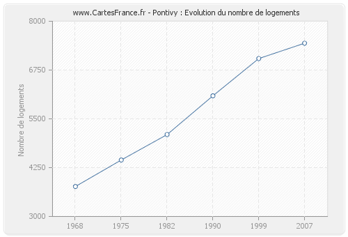 Le nombre de logements de Pontivy était de 7 437 en 2007, 7 044 en 1999, 6 090 en 1990, 5 097 en 1982, 4 446 en 1975 et 3 767 en 1968.