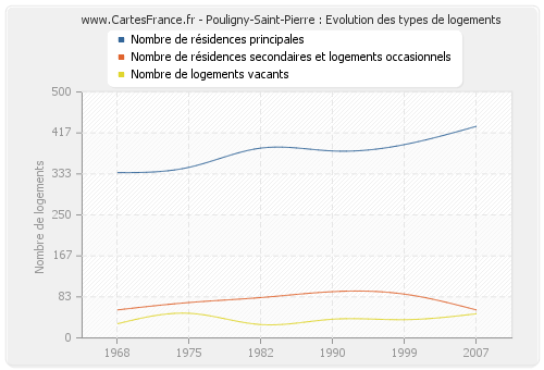 - Nombre de résidences principales de Pouligny-Saint-Pierre en 2007 : 430