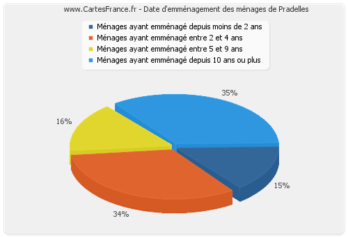 - Nombre de ménages de Pradelles ayant emménagé depuis 10 ans ou plus : 40