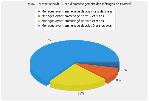 - Nombre de ménages de Pratviel ayant emménagé depuis 10 ans ou plus : 24