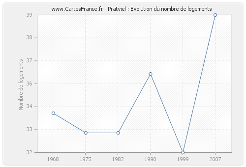 Historique du nombre de logements de Pratviel de 1968 à 2007 :