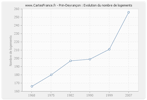 Historique du nombre de logements de Prin-Deyrançon de 1968 à 2007 :