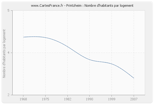- Nombre d'habitants moyen par logement de Printzheim en 2007 : 2,60