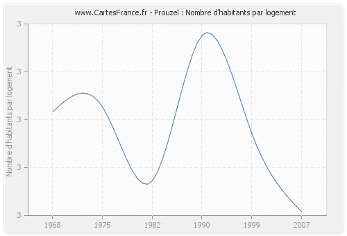 - Nombre d'habitants moyen par logement de Prouzel en 1990 : 2,97