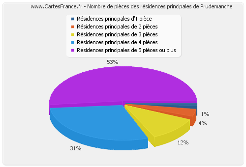 Nombre de pièces des résidences principales de Prudemanche en 2007 :