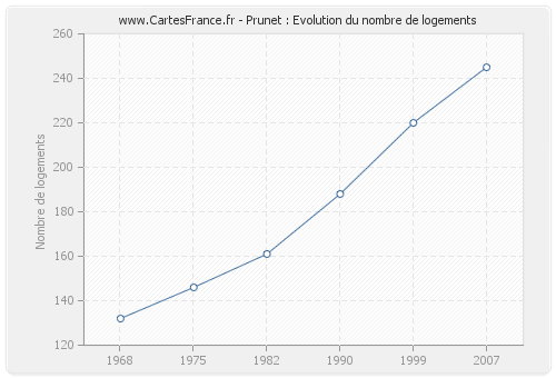 Historique du nombre de logements de Prunet de 1968 à 2007 :