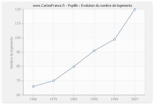 Historique du nombre de logements de Pupillin de 1968 à 2007 :