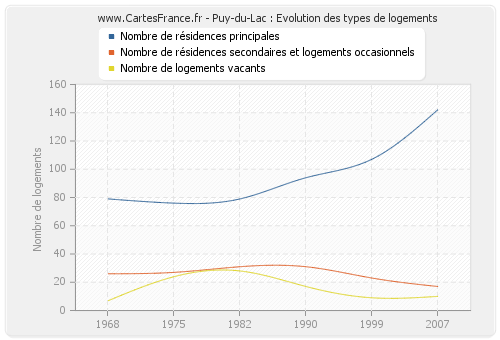 Historique du nombre de logements de Puy-du-Lac de 1968 à 2007 :