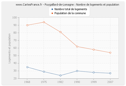- Population de Puygaillard-de-Lomagne en 2007 : 54 habitants