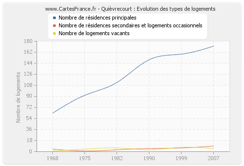 - Nombre de résidences principales de Quièvrecourt en 2007 : 172