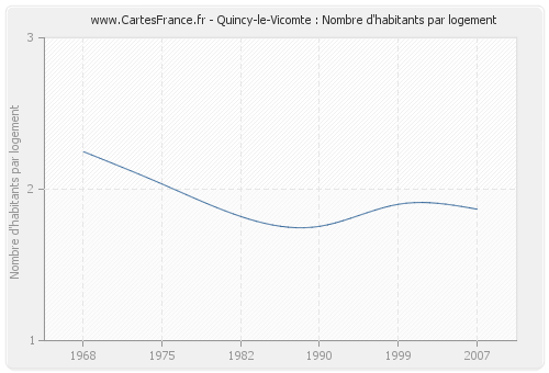 - Nombre d'habitants moyen par logement de Quincy-le-Vicomte en 2007 : 1,87
