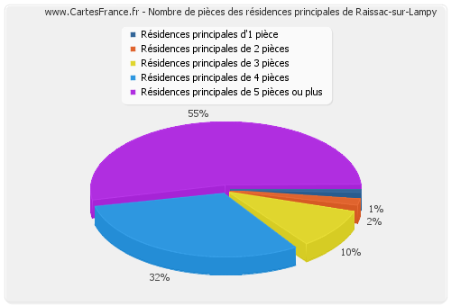 Nombre de pièces des résidences principales de Raissac-sur-Lampy en 2007 :