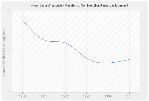 - Nombre d'habitants moyen par logement de Randens en 1968 : 2,75