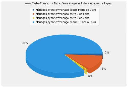 - Nombre de ménages de Rapey ayant emménagé depuis 10 ans ou plus : 7