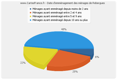 - Nombre de ménages de Rebergues ayant emménagé depuis 10 ans ou plus : 31