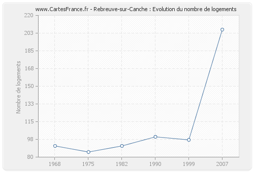 Historique du nombre de logements de Rebreuve-sur-Canche de 1968 à 2007 :