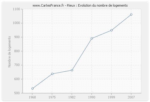 Historique du nombre de logements de Rieux de 1968 à 2007 :