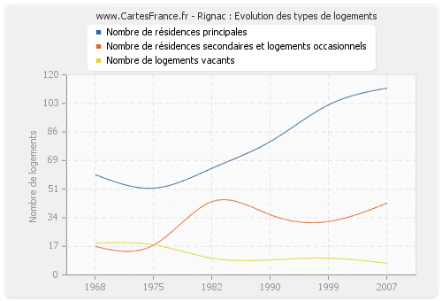 - Nombre de résidences principales de Rignac en 2007 : 112
