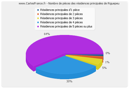 - Nombre de résidences principales de Riguepeu de cinq pièces et plus : 61