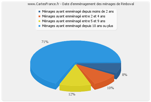 - Nombre de ménages de Rimboval ayant emménagé depuis 10 ans ou plus : 36
