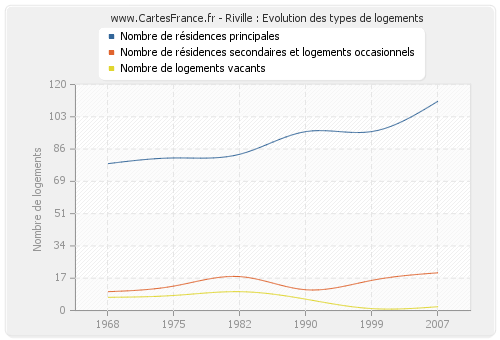 Historique du nombre de logements de Riville de 1968 à 2007 :