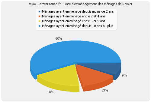 - Nombre de ménages de Rivolet ayant emménagé depuis moins de 2 ans : 18