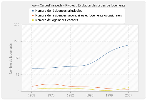 - Nombre de résidences principales de Rivolet en 2007 : 209