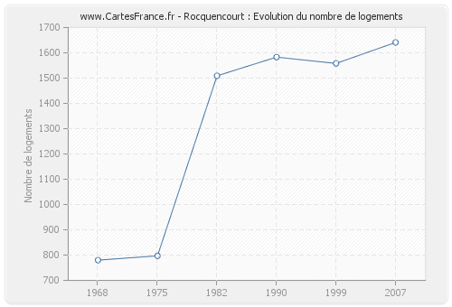 Le nombre de logements de Rocquencourt était de 1 641 en 2007, 1 558 en 1999, 1 583 en 1990, 1 509 en 1982, 797 en 1975 et 780 en 1968.