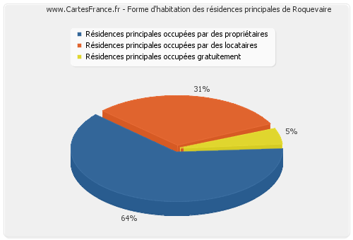 La Ville de Roquevaire recensait la même année un total de 3 325 ménages. Les graphiques suivants présentent les statistiques d'habitation de ces ménages de Roquevaire.