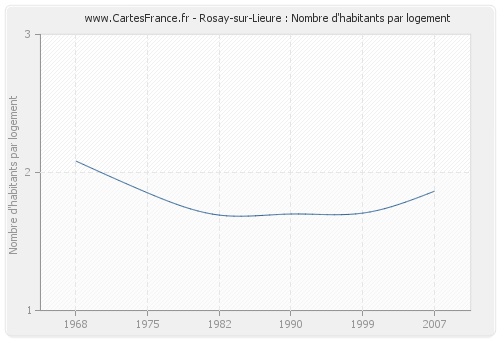 - Nombre d'habitants moyen par logement de Rosay-sur-Lieure en 2007 : 1,87