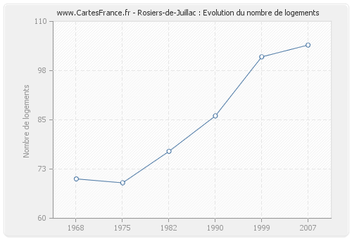 Historique du nombre de logements de Rosiers-de-Juillac de 1968 à 2007 :