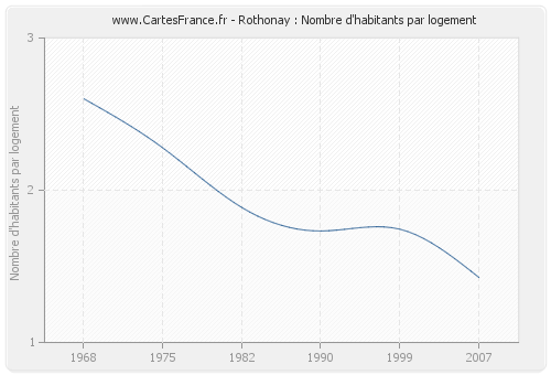 - Nombre d'habitants moyen par logement de Rothonay en 2007 : 1,43
