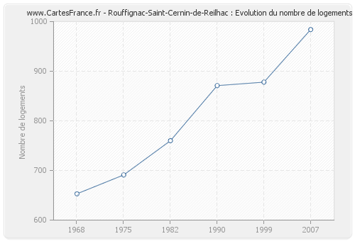 Le nombre de logements de Rouffignac-Saint-Cernin-de-Reilhac était de 984 en 2007, 878 en 1999, 871 en 1990, 760 en 1982, 691 en 1975 et 653 en 1968.
