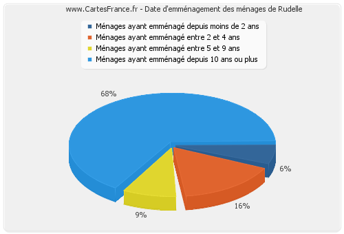 - Nombre de ménages de Rudelle ayant emménagé depuis 10 ans ou plus : 54