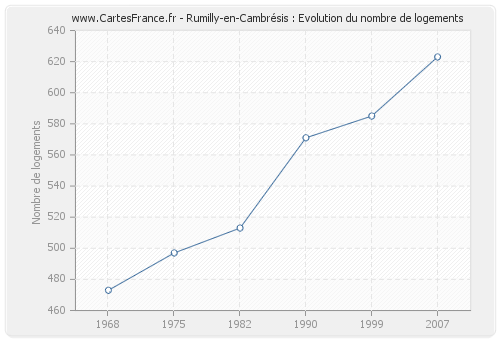 Historique du nombre de logements de Rumilly-en-Cambrésis de 1968 à 2007 :